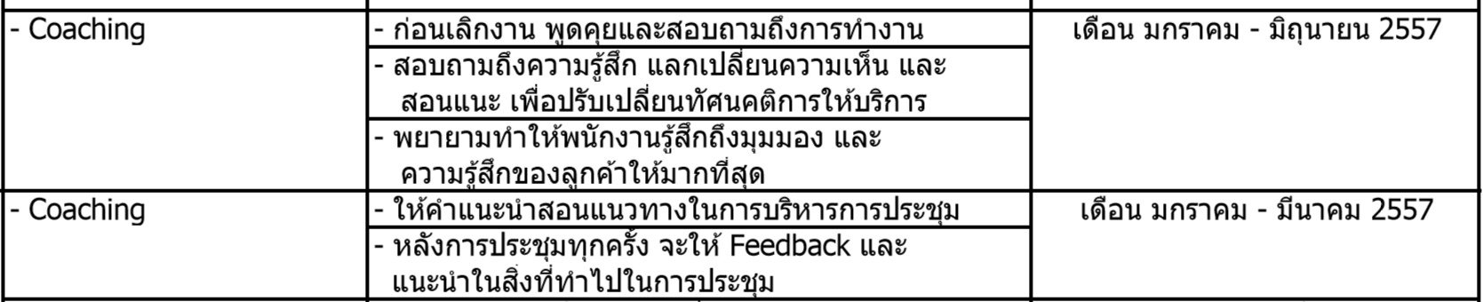 - วางแผนการ Coaching ถ้าเครื่องมือนั้นเป็นการ Coaching สิ่งที่หัวหน้าจะต้องทำต่อก็คือ วางแผนการ Coaching กับพนักงาน โดยจะต้องกำหนดเรื่องที่จะ Coach ในประเด็นต่างๆ ให้ชัดเจน เช่น Coach เพื่อให้สามารถตัดสินใจได้ดีขึ้น หรือ Coach เพื่อให้มีความชำนาญในการนำเสนองานมากขึ้น หรือ Coach เพื่อให้มีความสามารถในการเจรจาต่อรองได้ดีขึ้น ฯลฯ นอกจากการกำหนดเรื่องแล้ว สิ่งถัดไปที่จะต้องกำหนดให้ชัดเจนก็คือ จะ Coach กันอย่างไร เช่น ทุกวันก่อนเลิกงาน 1 ชั่วโมงให้มาคุยกัน เพื่อที่จะ Coach กันในประเด็นเหล่านี้ พนักงานก็จะนำเอาเรื่องงาน ปัญหาในประเด็นนั้น มาพูดคุยหารือกับผู้ Coach ส่วนผู้ Coach เองก็จะฟัง และให้คำแนะนำ สอนงาน รวมทั้งอาจจะใช้คำถาม เพื่อให้พนักงานได้คิดต่อยอดเองได้ เพื่อเป็นการพัฒนาอย่างยั่งยืน ซึ่งเทคนิคการ Coach ต่างๆ เหล่านี้ ไว้ผมจะนำมาเขียนให้อ่านอีกครั้งนะครับ