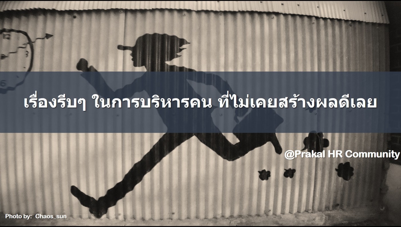 การบริหารทรัพยากรบุคคลถือเป็นเรื่องสำคัญ เพราะเป็นเรื่องของการหาคนเข้ามาทำงาน การเก็บรักษาเขาไว้ และการพัฒนา เพื่อให้เขาทำงานได้ดีขึ้น ดังนั้น เรื่องอะไรที่เกี่ยวกับการบริหารคน จึงไม่ควรที่จะเป็นเรื่องเร่งรีบจนเกินไป เคยเห็นหลายองค์กรที่บริหารคนด้วยความเร่งรีบมาก ๆ ไม่รู้ว่าจะรีบไปไหนเหมือนกันนะครับ แต่สุดท้ายความเร่งรีบเหล่านี้ไม่เคยส่งผลดีต่อการบริหารทรัพยากรบุคคลขององค์กรเลย