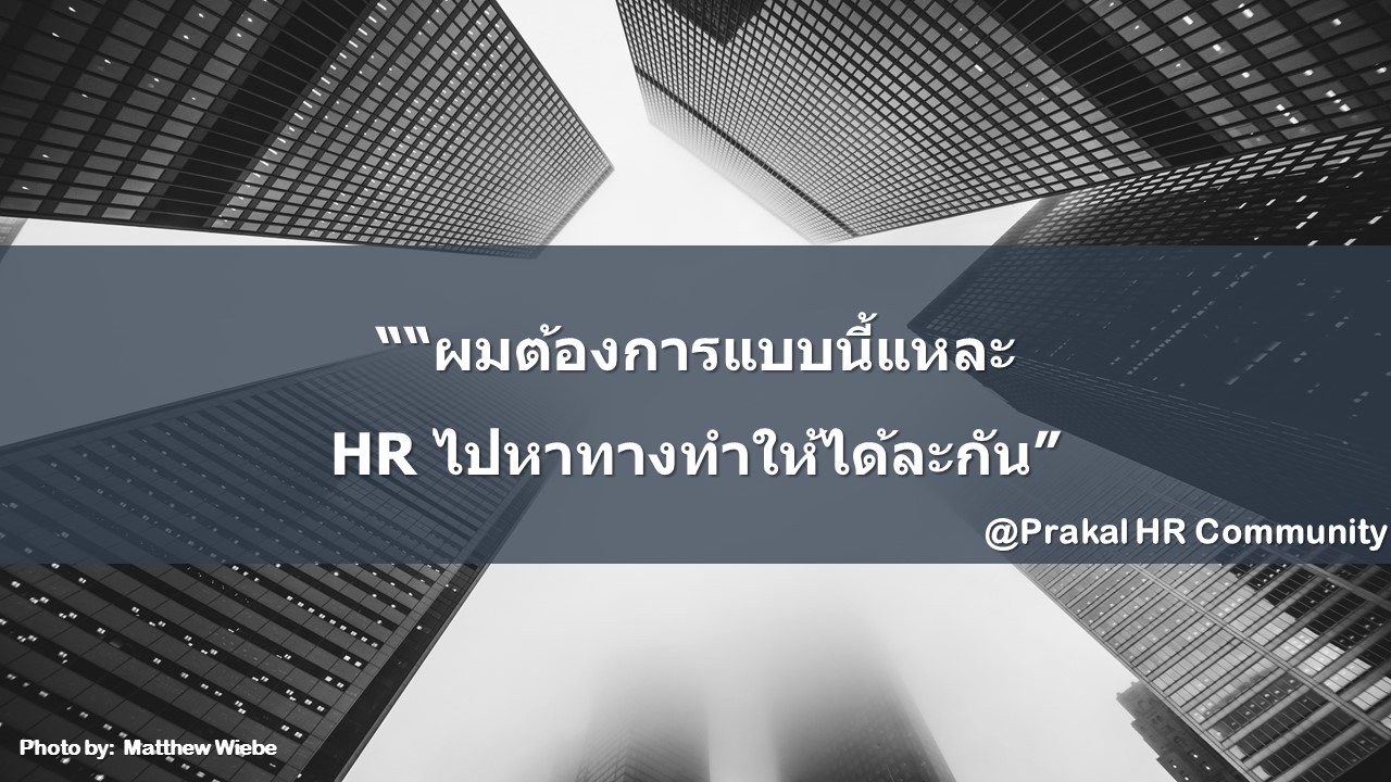 “ผมต้องการแบบนี้ HR ไปหาทางทำให้ได้ละกัน” ท่านที่ทำงานด้านทรัพยากรบุคคลทั้งหลายเคยได้ยินประโยคที่ว่ามาหรือไม่ครับ บริษัทใดที่มีประโยคนี้เกิดขึ้นจากผู้จัดการสายงานบ่อยๆ แสดงว่า ระบบการบริหารทรัพยากรบุคคลของบริษัทมีปัญหา หรือมียังไม่ได้รับการยอมรับจากผู้จัดการสายงาน ก็เลยทำให้ผู้จัดการสายงานทำการคิดเอง ทำเอง และตัดสินใจเอง จากนั้นก็โยนสิ่งที่คิดมาให้ HR เพื่อดำเนินการตามคำสั่ง โดยที่สิ่งที่คิดนั้น อาจจะสร้างปัญหาตามมาอีกมากมาย แต่ก็ไม่สนใจ