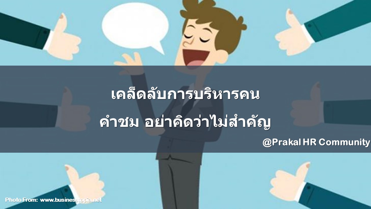 ในการที่จะบริหารคน และได้ใจของคนอื่นนั้น องค์ประกอบหนึ่งที่สำคัญและขาดไม่ได้เลยก็คือ คำชมเชยที่มีให้กับคนคนนั้น เราลองนึกถึงครอบครัวที่มีลูก หรือมีหลานที่เพิ่งจะหัดทำอะไรเป็นครั้งแรกดูสิครับ เวลาที่เด็กเริ่มพูดคำแรกได้ พ่อแม่ทำอย่างไรกับลูกครับ แน่นอน ก็ต้องชื่นชม หรือเวลาที่เด็กเริ่มตั้งไข่และก้าวเท้าก้าวแรกได้ พ่อแม่ทำอย่างไรครับ แน่นอน ก็ต้องชื่นชม ชมเชย บางคนวิ่งเข้าไปกอดรัก และให้กำลังใจลูกตัวเองอย่างเต็มที่ จะมีพ่อแม่คนไหนที่คิดแบบนี้บ้างหรือไม่ครับว่า “เกิดเป็นคนมันก็ต้องเดินได้ มันก็เป็นธรรมชาติของคนอยู่แล้ว ทำไมต้องไปชมเด็กมันด้วย” !!!!