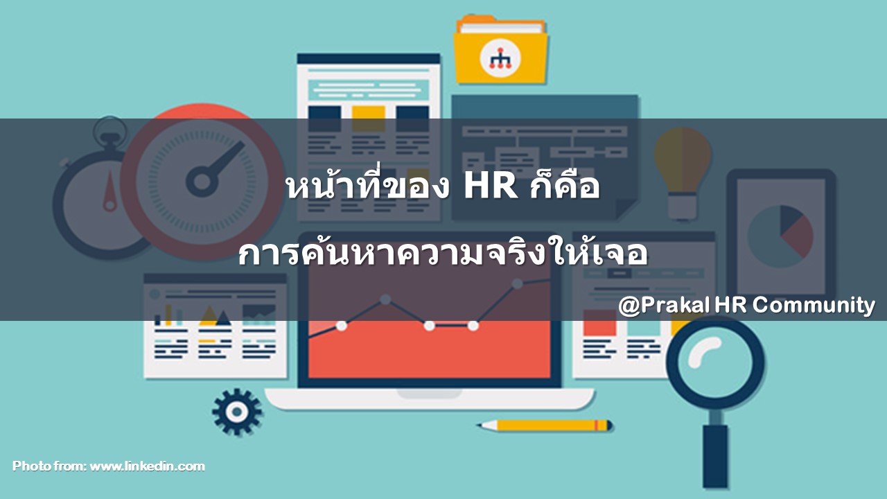 หน้าที่ของคนที่ทำงาน HR ไม่ว่าจะเป็นสรรหาคัดเลือก พัฒนาพนักงาน ค่าจ้างเงินเดือน หรือการสร้างแรงงานสัมพันธ์ที่ดีนั้น ล้วนแต่เป็นหน้าที่ของการค้นหาความจริงให้เจอ เพื่อที่จะได้บริหารจัดการกับความจริงต่างๆ เหล่านั้นได้อย่างมืออาชีพ