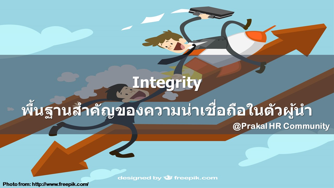 คำว่า Integrity คำนี้หาคำแปลตรงๆ กับความหมายยากมาก หลายคนแปลว่า ความซื่อสัตย์ ซึ่งก็ยังกินความได้ไม่หมด ถ้าจะแปลอย่างยาวๆ หน่อยก็น่าจะแปลว่า “ความซื่อสัตย์ต่อต่อเอง และผู้อื่น” หรือ “พูดอะไรก็ทำในสิ่งที่ได้เคยพูดไว้” ซึ่งพฤติกรรมที่เรียกกว่า Integrity นั้นมีความสำคัญมากสำหรับการเป็นผู้นำที่ดี