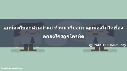 ดังนั้นประเด็นระหว่างหัวหน้ากับลูกน้องนั้น จริงๆ จะโทษกันไปมามันก็ไม่มีประโยชน์อะไร ลองหันกลับมาพิจารณาตัวเราเองก่อนดีกว่ามั้ย ว่าเราทำหน้าที่ของตนเองได้ดีที่สุดแล้วหรือยัง