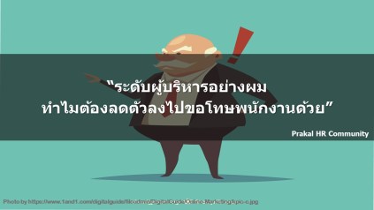 ผมได้ยินประโยคนี้จากผู้บริหารคนหนึ่ง ซึ่งผมเองก็ไม่เคยคิดว่า จะได้ยินจากปากของผู้บริหารในยุคนี้ เพราะเท่าที่รู้สึก ผู้บริหารสมัยใหม่นี้น่าจะไม่ค่อยมีพฤติกรรมนี้มากนัก แต่กลับผิดคาด ยิ่งไปกว่านั้น ได้คุยกับลูกพี่ลูกน้องในช่วงวันตรุษจีนที่ผ่านมา ก็ยิ่งทำให้ทราบว่า ยังคงมีผู้บริหารในแบบที่ไม่เคยเห็นว่าตนเองผิดอยู่อีกเยอะทีเดียว