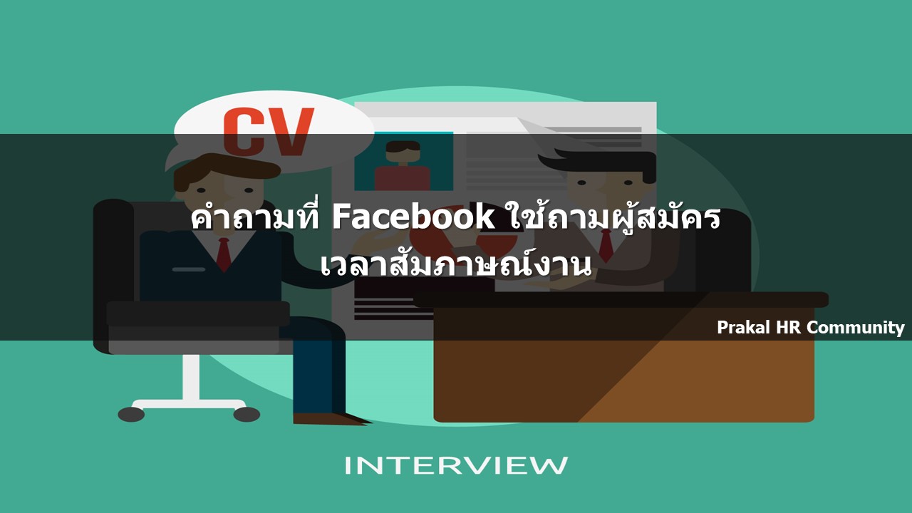 ประเด็นที่น่าสนใจ และน่าลองนำมาปรับใช้กับบริษัทเราเอง ก็คือแนวทางในการตั้งคำถามสำหรับการสัมภาษณ์ผู้สมัคร เพื่อให้ได้ผู้สมัครที่เหมาะสมกับองค์กรมากที่สุด เขาก็เลยสำรวจว่า facebook ตั้งคำถามอะไรบ้างในการสัมภาษณ์ ลองมาดูกันครับ (ผมอาจจะแปลไม่ได้ตรงเป๊ะๆ กับภาษาอังกฤษนะครับ เป็นการจับใจความมากกว่า)
