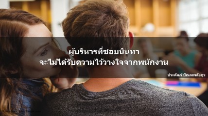 ดังนั้น ถ้าเราอยากจะบริหารคนได้ดี และได้รับความเชื่อถือจากลูกน้องสิ่งที่จะต้องทำก็คือ หยุดนินทาคนอื่น ผมไม่เคยเห็นผู้นำระดับสูง ผู้บริหาร และหัวหน้างานที่ดีๆ มานั่งนินทาลูกน้อง หรือร่วมวงใส่ไฟคนอื่นเลยสักครั้ง สิ่งที่หัวหน้าจะต้องระวังในการปฏิบัติตนในเรื่องนี้ก็คือ