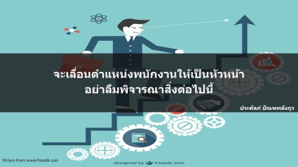 ดังนั้นก่อนที่จะเลื่อนตำแหน่งให้พนักงานให้เติบโตขึ้นไปในตำแหน่งที่ต้องบังคับบัญชาทีมงาน อย่าลืมเตรียมความพร้อมให้พนักงานคนนั้นก่อนนะครับ การเตรียมความพร้อมแปลว่า เราจะต้องพอเห็นศักยภาพของพนักงานคนนั้นล่วงหน้าสัก 1-2 ปี เพื่อที่จะได้วางแผนพัฒนาพนักงานได้อย่างเต็มที่ก่อนเลื่อนตำแหน่ง แล้วมีเรื่องอะไรบ้างที่ควรจะต้องเตรียมความพร้อมให้พนักงาน