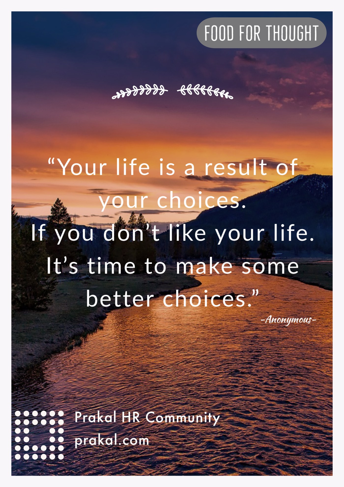 “Your life is a result of your choices. If you don’t like your life. It’s time to make some better choices.”