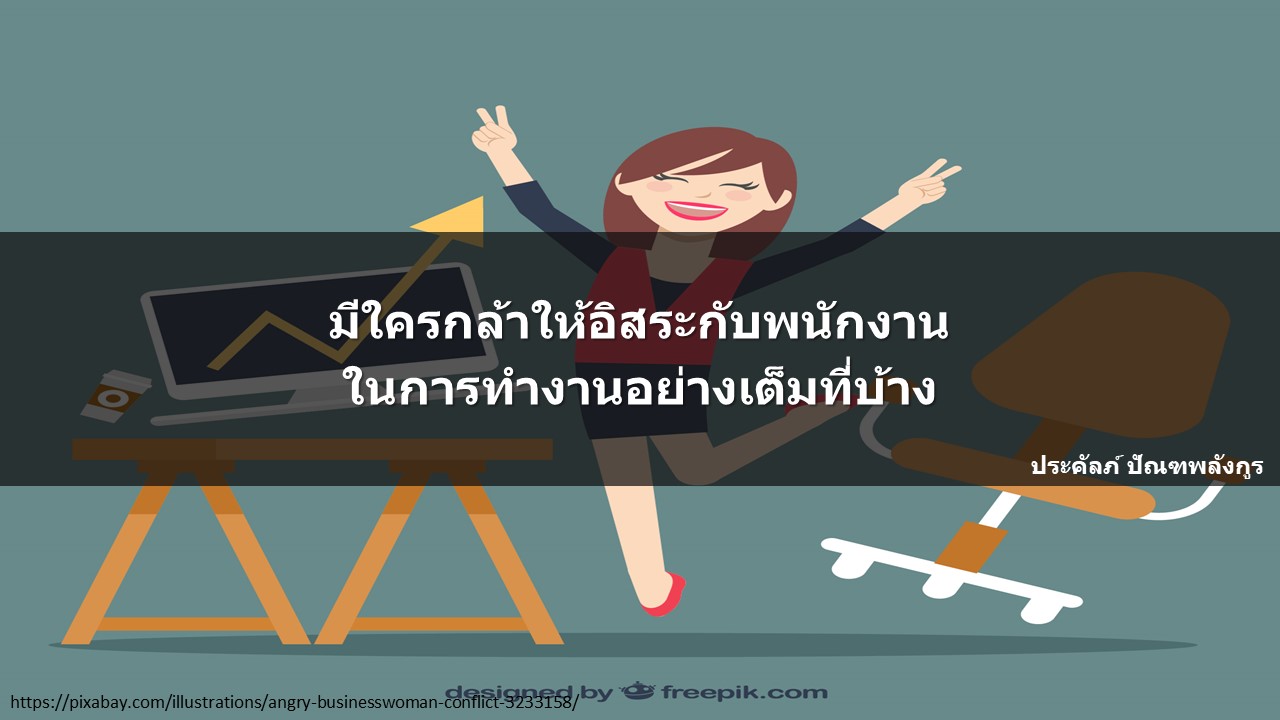 ยิ่งไปกว่านั้น องค์กรขนาดใหญ่ๆ หลายแห่ง ก็พิสูจน์มาแล้วว่า การให้อิสระ และอำนาจในการบริหารชีวิตและผลงานของตนเองอย่างเต็มที่นั้น กลับทำให้พนักงานยิ่งรู้สึกดี และมีพลังในการทำงานมากขึ้นไปอีก เพราะเขาสามารถควบคุมชีวิตและผลงานของตนเองได้ นักจิตวิทยามากมายสรุปจากผลวิจัยได้ว่า การที่คนเรามีอำนาจควบคุมตนเอง สามารถควบคุมชีวิตตนเองได้ จะทำให้เขามีพลังและมีแรงจูงใจมากขึ้นไปอีก