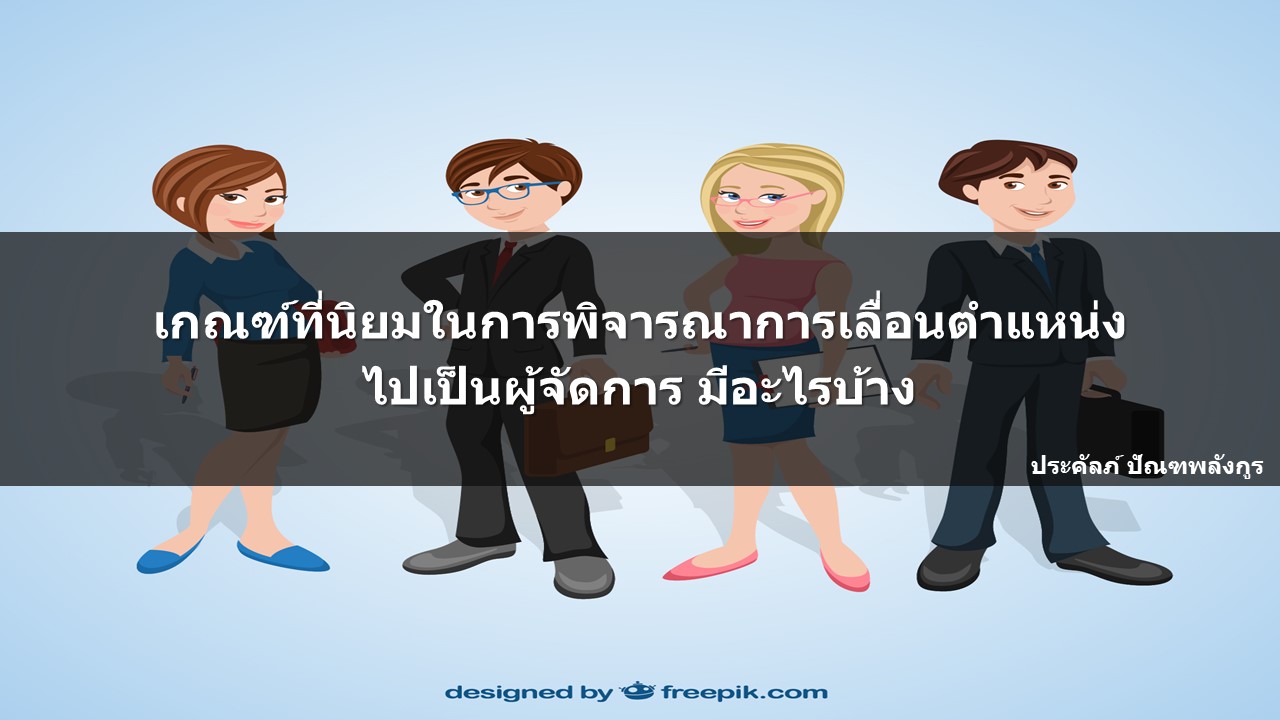 จะสังเกตได้ว่า เกณฑ์ในการพิจารณา และการเตรียมความพร้อมพนักงานที่จะเลื่อนตำแหน่งไปสู่การเป็นผู้จัดการนั้น หลักๆ ก็จะประกอบไปด้วย