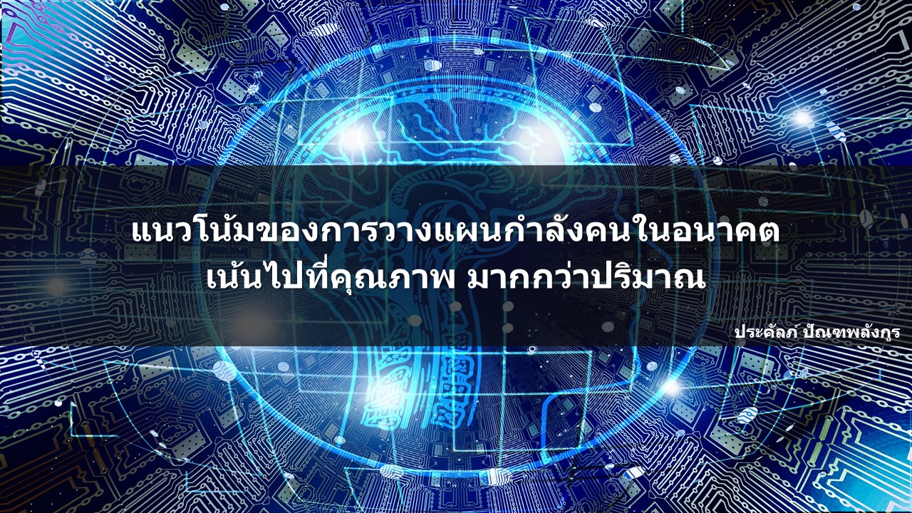 แต่ในยุคนี้ และอนาคตข้างหน้าที่จะถึง เราจะไม่เน้นไปที่การคำนวณอัตรากำลังในลักษณะที่เป็นจำนวนคน หรือปริมาณพนักงานอีกต่อไป แต่เราจะเน้นไปที่การวางแผนกำลังคนในเชิงคุณภาพของกำลังคนมากกว่าปริมาณ