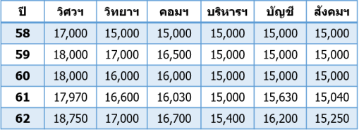 ถ้าเราดูจากอัตราแรกจ้างย้อนหลังของแต่ละวุฒิการศึกษา และแต่ละสาขาวิชาชีพ ก็จะเห็นว่า อัตราแรกจ้างของบ้านเรานั้น แทบจะไม่ได้มีการปรับขึ้นอย่างมีนัยสำคัญ 5 ปีผ่านไป ก็ยังคงอยู่ในอัตราคงที่ อาจจะมีบวกลบบ้าง อันนี้อยู่ที่ข้อมูลที่ได้มาในแต่ละปี ที่อาจจะมาจากต่างองค์กรกันบ้าง