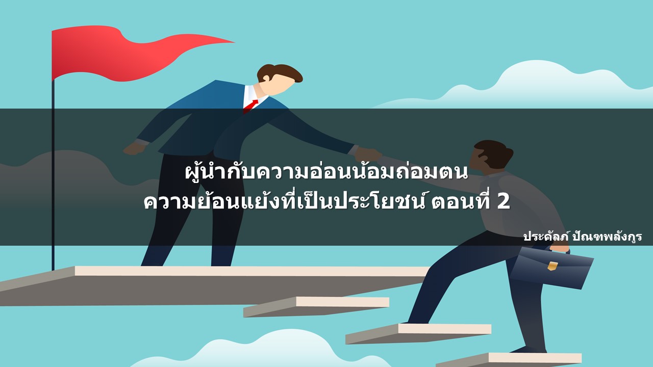 ถามว่า ความอ่อนน้อมถ่อมตน ที่เกิดขึ้นในตัวผู้นำนั้น มันแสดงถึงความอ่อนแอของผู้นำจริงๆ หรือ คำตอบก็คือ ไม่ใช่เลย แต่ ความอ่อนน้อมถ่อมตน กลับกลายเป็นพฤติกรรมที่แสดงความเข้มแข็งทางด้านจิตใจ แสดงให้เห็นถึงความเชื่อมั่น และเชื่อใจพนักงานของตนเอง แสดงให้เห็นว่า เราเป็นผู้นำที่พร้อมที่จะนำพาองค์กรไปสู่อนาคตที่ดีขึ้น โดยการนำพาจิตใจของพนักงานทุกคนให้ไปด้วยกัน