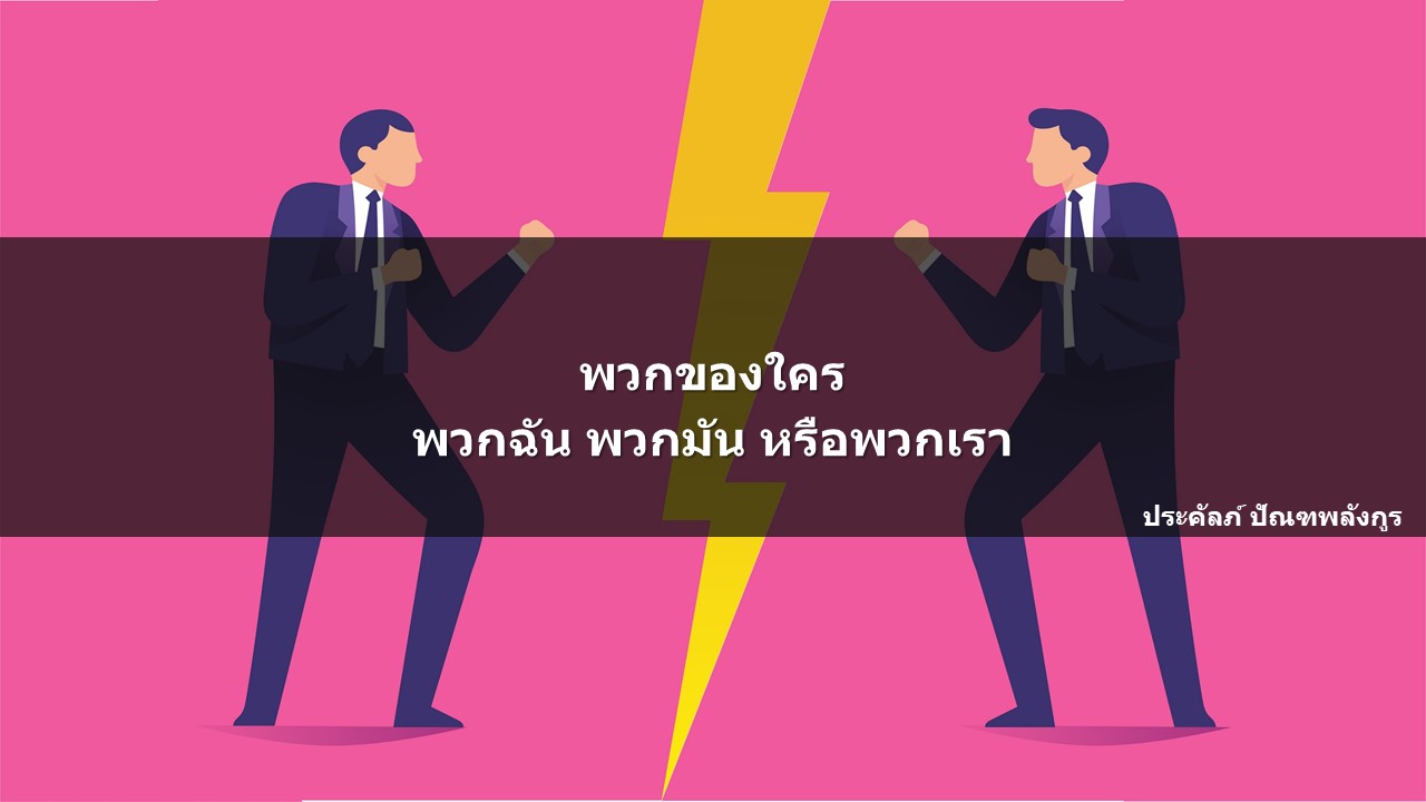 ด้วยสภาพเช่นนี้ ตัวผู้นำองค์กร และฝ่ายบุคคลที่เป็นหน่วยงานที่ดูแลเรื่องของพนักงานทั้งหมด จึงจำเป็นต้องไม่ไปเล่นพรรคเล่นพวกไปกับเขาด้วย จะต้องคิดและปรับมุมมองให้เป็น “พวกเรา” ให้ได้