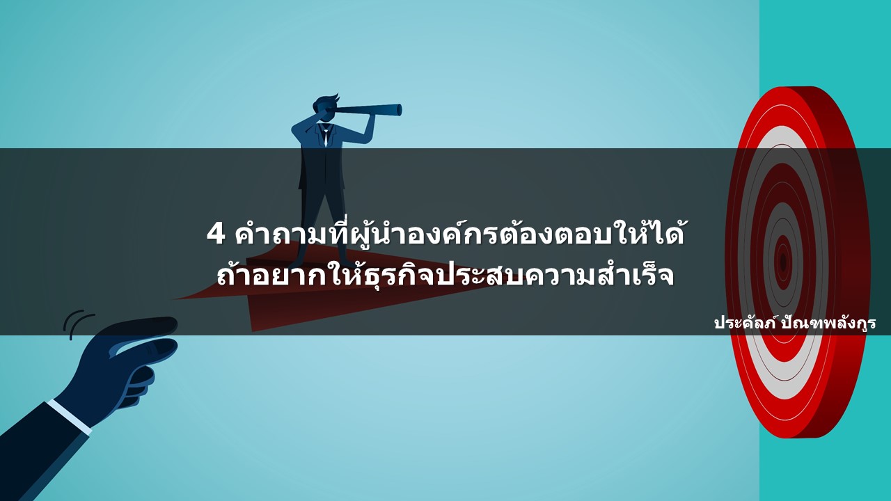 องค์กรทุกแห่งที่จัดตั้งขึ้นมา ไม่ว่าจะเป็นองค์กรธุรกิจที่แสวงหาผลกำไร หรือ องค์กรที่ไม่แสวงหากำไรก็ตาม ผู้บริหารที่เข้ามาบริหารองค์กรเหล่านี้ ต่างก็ต้องการทำให้องค์กรประสบความสำเร็จตามเป้าหมายที่ตั้งไว้ แต่หลายองค์กรที่มีปัญหาในการบริหารจัดการ ไม่ว่าจะเป็นการบริหารงาน การตอบโจทย์ความต้องการของลูกค้า การคิดผลิตภัณฑ์ใหม่ๆ ฯลฯ ที่ไม่สามารถบริหารจัดการได้ก็เพราะ ผู้บริหาร และผู้นำองค์กรไม่สามารถที่จะตอบคำถาม 4 ข้อได้อย่างชัดเจนและลึกมากพอ