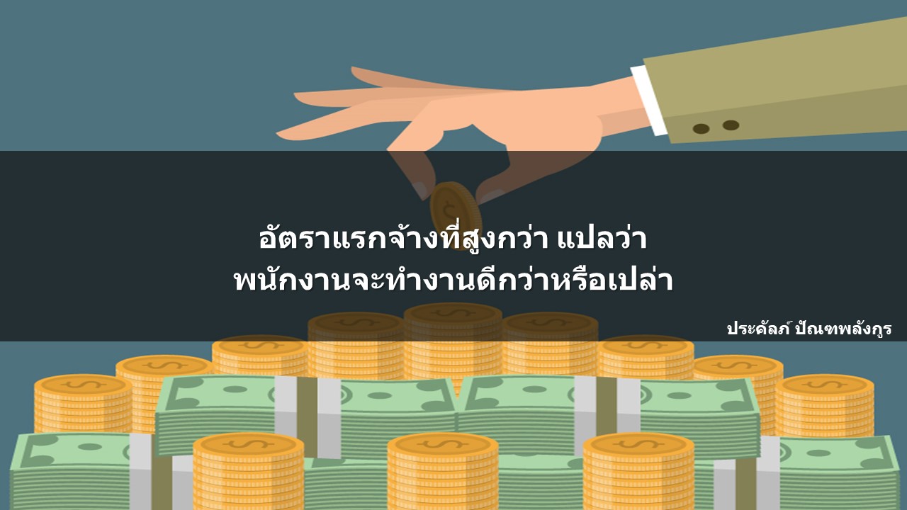 มีผู้บริหารหลายองค์กรที่สอบถามมาว่า องค์กรของเราจ่ายอัตราแรกจ้างที่สูงกว่าตลาดมาก ซึ่งการที่เราจ่ายสูงกว่าตลาดนั้น จะทำให้เราได้ผลงานจากพนักงานที่ดีกว่า การจ่ายต่ำกว่า หรือเท่ากับตลาดหรือไม่