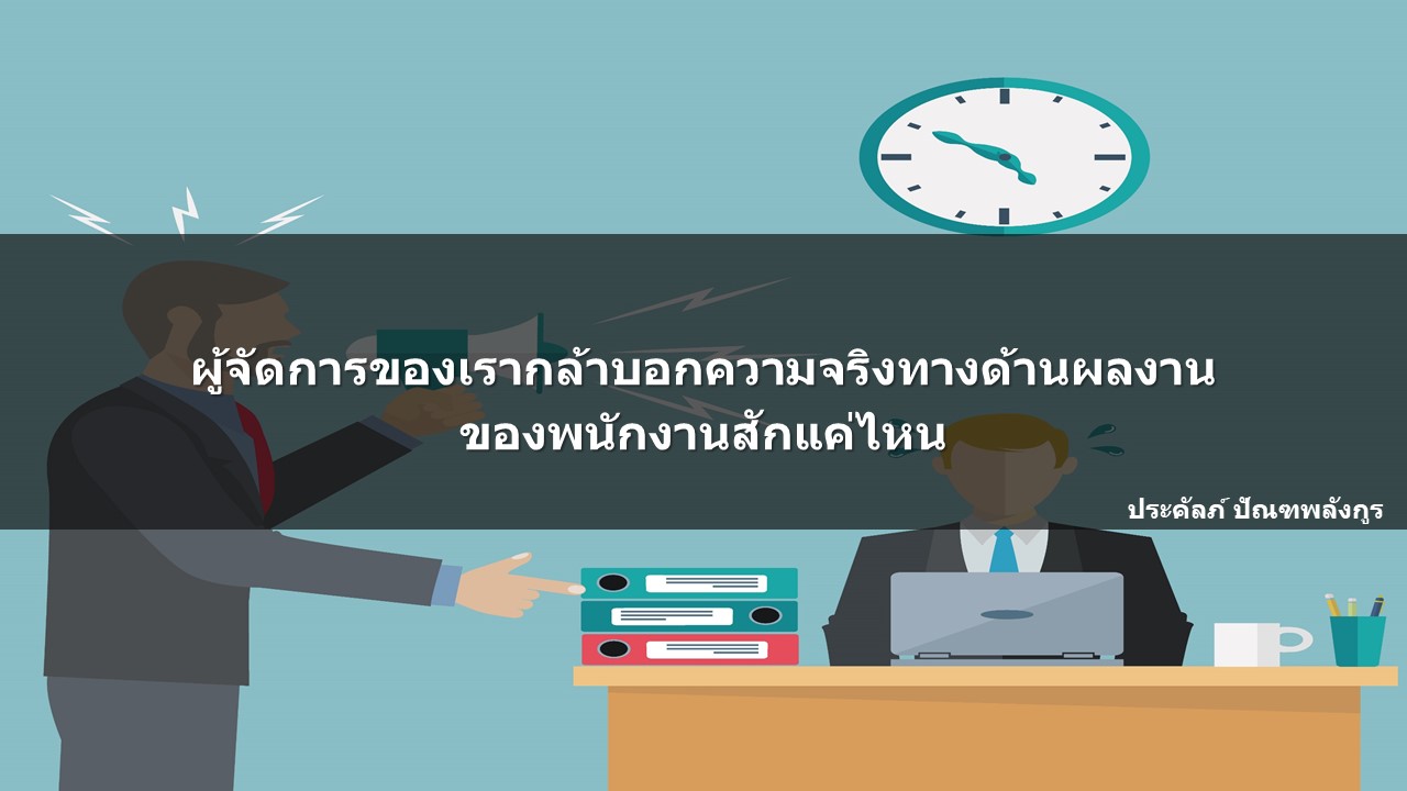 เรื่องของผลงานของพนักงานนั้น เรามีระบบต่างๆ นานา มากมายเข้ามา เพื่อที่จะใช้ในการบริหารผลงานพนักงาน ประเมินผลงานพนักงาน ก็เพื่อให้ทั้งสองฝ่ายใช้ข้อมูลข้อเท็จจริงที่เกิดขึ้นจริงๆ ในผลงานของพนักงานมาคุยกัน เป้าหมายก็คือ เพื่อพัฒนาผลงานของพนักงานให้ดีขึ้น คำถามก็คือ ผู้จัดการของเรานั้น กล้าบอกความจริงทางด้านผลงานของพนักงานแต่ละคน ให้กับพนักงานของเขาทราบมากน้อยสักแค่ไหน