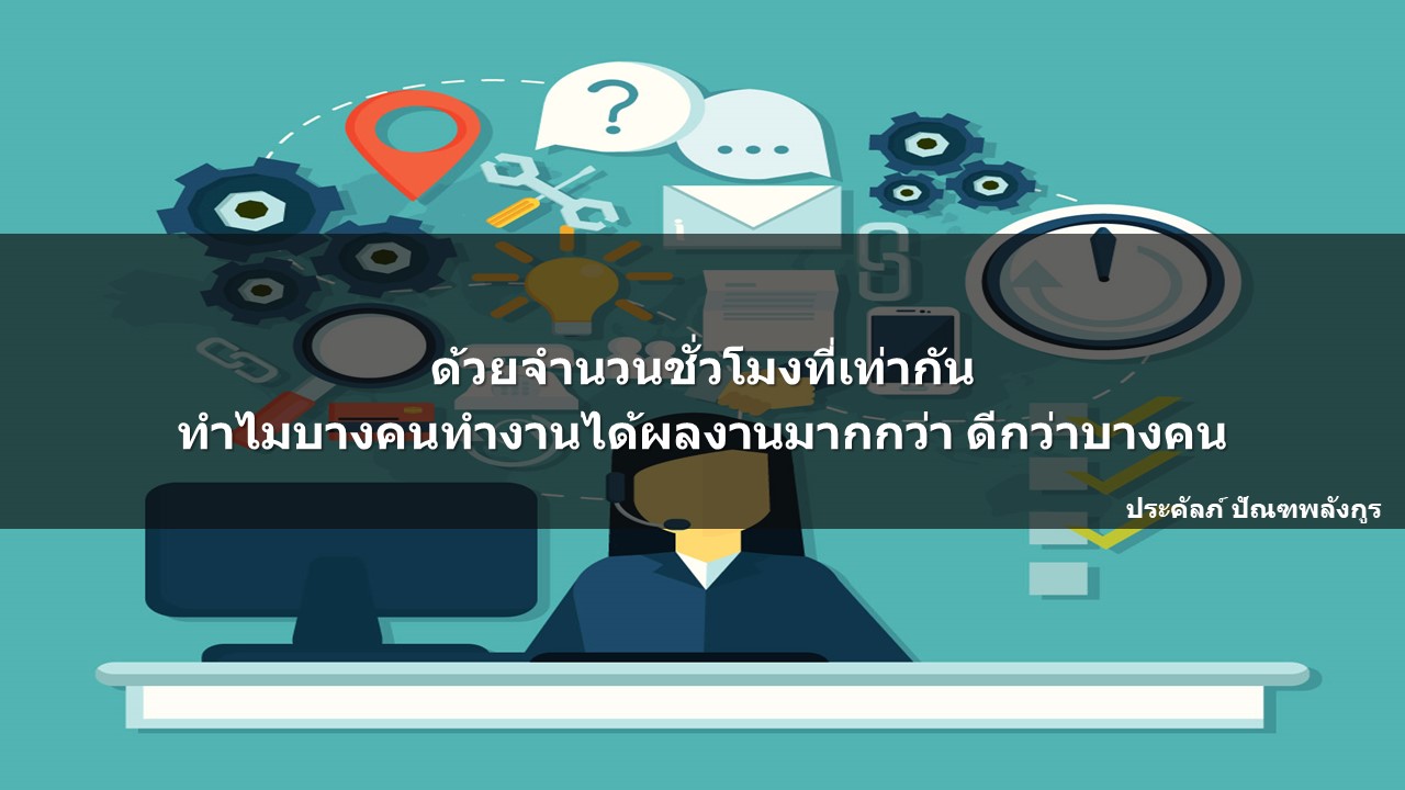 เคยวิเคราะห์หรือไม่ครับว่า ด้วยจำนวนชั่วโมงการทำงานที่เท่ากันในแต่ละวัน ทำไมพนักงานบางคนถึงทำงานได้อย่างมากมาย อีกทั้งคุณภาพงานก็ออกมาดีกว่า เมื่อเทียบกับพนักงานอีกคน ที่ไม่ค่อยจะมีผลงานอะไรออกมาให้เห็น