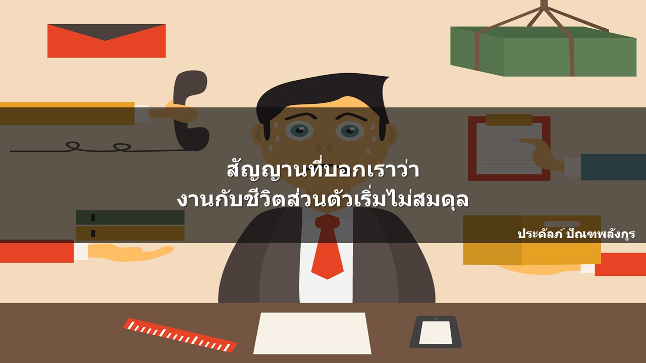 แค่เพียงเรารู้สึกในข้อใดข้อหนึ่งใน 4 ข้อข้างต้น ก็แสดงว่า เราเริ่มที่จะไม่มีความสมดุลในการทำงานกับชีวิตส่วนตัวของเราแล้ว ก็คงต้องหยุดพัก และคิดวิเคราะห์ให้ดี ว่าเราจะต้องทำอย่างไรเพื่อให้กลับมารู้สึกสนุกกับการทำงานเหมือนเดิม ทำอย่างให้เรายังคงสามารถรักษาระดับของการทำงาน และระดับของการใช้ชีวิตของเราในสัดส่วนที่ตัวเราเองยอมรับได้ เพราะสัดส่วนระหว่าง ชีวิตส่วนตัวกับเรื่องของงานของแต่ละคนนั้น ไม่มีทางเหมือนกัน