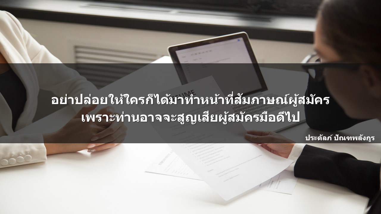 ดังนั้นในยุคนี้ องค์กรจะต้องให้ความสำคัญกับผู้ที่จะมาทำหน้าที่สัมภาษณ์พนักงานด้วย ต้องไม่ใช่ให้ใครก็ได้มาสัมภาษณ์ แล้วก็ปล่อยให้เขาตัดสินใจว่า จะรับหรือไม่รับ โดยที่ไม่มีการฝึกฝนผู้สัมภาษณ์เหล่านี้เลย