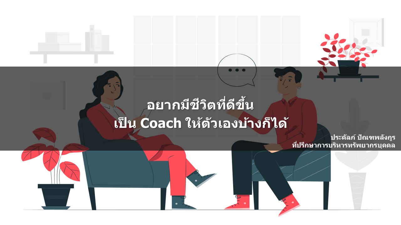 เมื่อพูดถึงคำว่า coaching เราก็มักจะจินตนาการถึงภาพคนสองคนที่กำลังคุยกัน ให้คำแนะนำ ใช้คำถาม เพื่อให้คิด และนำเอาสิ่งที่คุยกันนั้นไปทำให้ตนเองดีขึ้น แต่ชีวิตเราทุกคนนั้นคงจะหา Coach ไม่ได้กันทุกคนแน่นอน ดังนั้น สิ่งที่เราจะต้องทำให้ได้ก็คือ การ Coach ตนเอง เพื่อให้ตนเองประสบความสำเร็จให้ได้