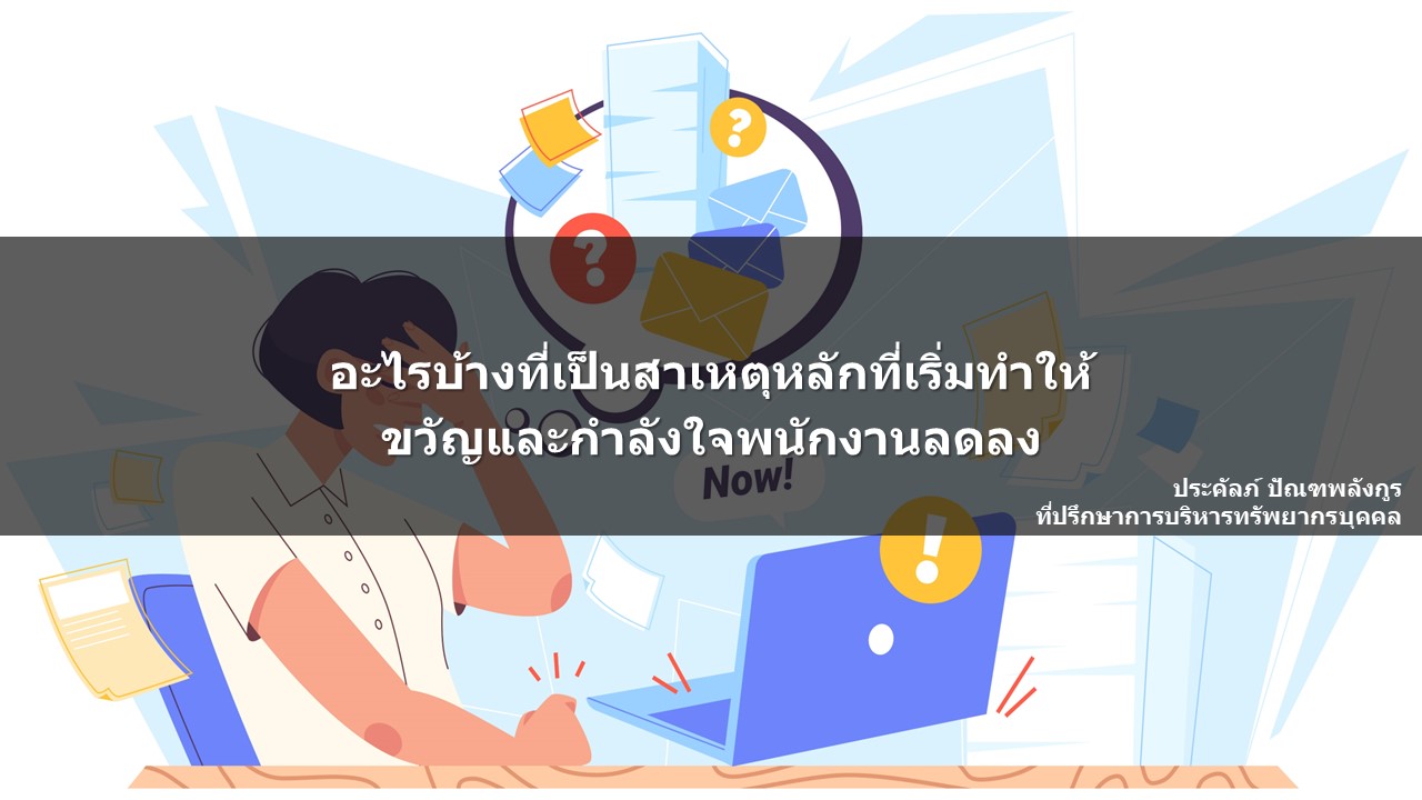 จากที่ได้ทำวิจัยเล็กๆ กับลูกค้าที่ผมไปบรรยายด้วย และลูกค้าที่ได้เข้าไปทำระบบเกี่ยวกับการบริหารทรัพยากรบุคคล ก็ได้สอบถามถึงปัจจัยที่ทำให้ขวัญและกำลังใจของพนักงานลดน้อยถอยลงไปว่ามีอะไรบ้าง ผลที่ออกมาก็มีดังต่อไปนี้ครับ
