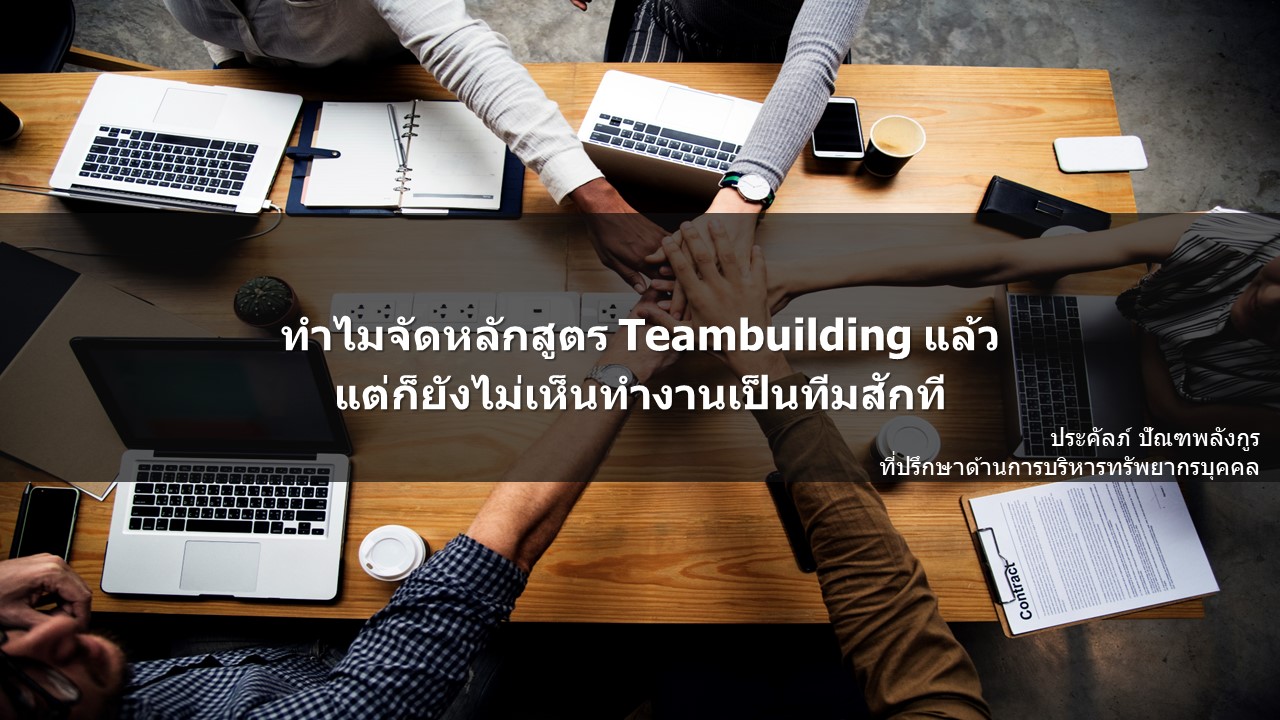 สิ่งที่จะต้องระลึกไว้เสมอ ก็คือ เรื่องของการทำงานเป็นทีมนั้น มันไม่ได้สร้างขึ้นได้ด้วยการฝึกอบรมเพียงไม่กี่วัน ไม่ใช่แค่เพียงการไปทำกิจกรรมร่วมกัน ลำบากร่วมกัน ร้องไห้ร่วมกันแล้ว กลับมาจะเกิดทีมงานที่แข็งแกร่งได้ทันที ยากครับ เพราะเบื้องลึกของการทำงานร่วมกันนั้น เราเองไม่ทราบอยู่แล้วว่า พนักงานแต่ละคนนั้นมีปัญหาและความขัดแย้งอะไรกันบ้าง บางคนไม่ชอบหน้ากัน บางคนมีความขัดแย้งกันรุนแรงมาก ดังนั้นแค่เพียงวันสองวัน มันไม่ได้ช่วยอะไรได้มาก