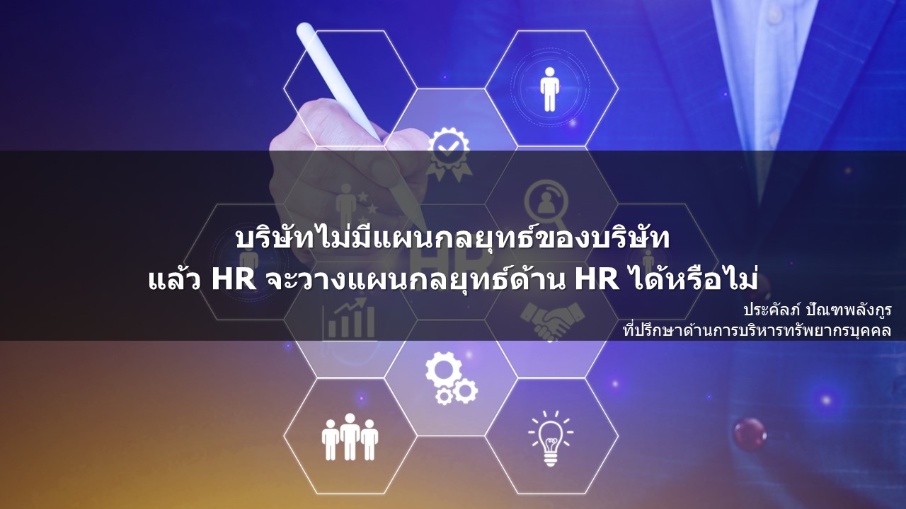 โดยสรุป: แม้ว่าองค์กรจะไม่มีแผนกลยุทธ์องค์กรโดยรวม แต่ฝ่ายทรัพยากรบุคคลก็ยังสามารถวางแผนกลยุทธ์ทางด้าน HR ขององค์กรได้ครับ