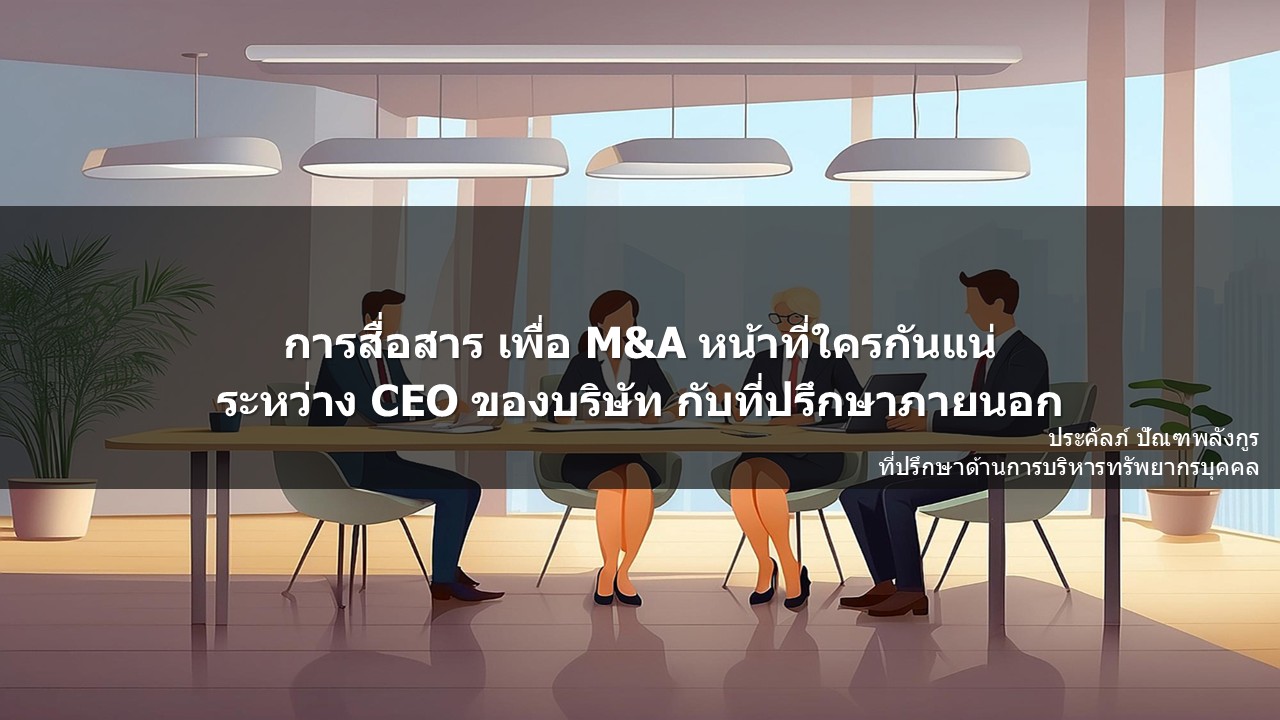 โดยหลักการและแนวปฏิบัติที่เหมาะสมในกรณีที่มีการควบรวมกิจการ (M&A) และพนักงานมีข้อสงสัยหรือลังเลที่จะไปด้วย ผู้ที่ควรรับบทบาทหลักในการพูดคุยกับพนักงานคือ CEO หรือผู้บริหารระดับสูงของบริษัทเอง ไม่ใช่ที่ปรึกษาคนนอก