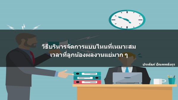 ในฐานะที่ท่านเป็นหัวหน้างาน ท่านจะทำอย่างไร ถ้าลูกน้องของตนเองทำผลงานไม่ได้ตามมาตรฐาน หรือตามเป้าหมายที่เรากำหนดไว้ หัวหน้าแต่ละคนก็จะมีคำตอบที่แตกต่างกันออกไป ตามสไตล์ในการบริหารผลงานของคนที่เป็นหัวหน้า ลองมาดูความคิดเห็นของคนที่เป็นหัวหน้าตามลำดับเลยว่า ถ้าเจอว่าลูกน้องของตนเองมีผลงานที่ไม่เข้าตาเราเลย เขาจะทำอย่างไรกันบ้าง