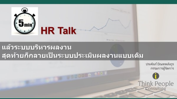 หลายบริษัท เอาระบบบริหารผลงานเข้ามาแก้ไขระบบประเมินผลงาน ซึ่งจริงๆ แล้วมันคนละวัตถุประสงค์กัน ลองมาดูว่า ทำไมระบบบริหารผลงาน ซึ่งเป็นระบบที่ดี แต่พอเอามาใช้แล้ว กลับกลายเป็นไม่สามารถใช้ได้ สุดท้ายก็กลับมาเป็นระบบประเมินผลงานที่พนักงานเบื่อหน่ายเหมือนเดิม อ่านเพิ่มเติม “5 Minute HR Talk: ระบบบริหารผลงาน กลายเป็นระบบประเมินผลงานแบบเดิม เพราะอะไร”