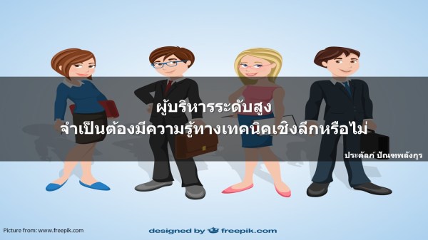ท่านผู้อ่านคิดอย่างไรครับ อ่านเพิ่มเติม “ผู้บริหารระดับสูง จำเป็นต้องมีความรู้ทางเทคนิคในเชิงลึกหรือไม่”