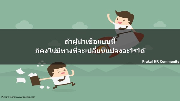 คงเคยได้ยินเรื่องของ Mindset กันมาบ้างนะครับ ว่า คนเราปกติจะมี Mindset อยู่สองแบบก็คือ Growth Mindset และ Fixed Mindset ซึ่งมีลักษณะค่อนข้างจะตรงกันข้ามกันเลย กล่าวคือ คนที่มี Growth Mindset ก็มักจะมองโลกในแง่ดี มองในลักษณะที่ว่า ปัญหาก็คือ สิ่งที่เข้ามาท้าทายเรา และไม่มีอะไรที่เราทำไม่ได้ ถ้าเราพยายาม รวมทั้งคิดเสมอว่า คนเรานั้นยังเรียนรู้อะไรต่อมิอะไรได้อีกเยอะมากมาย อ่านเพิ่มเติม “ถ้าผู้นำเชื่อแบบนี้ ก็คงไม่มีทางที่จะเปลี่ยนแปลงอะไรได้”
