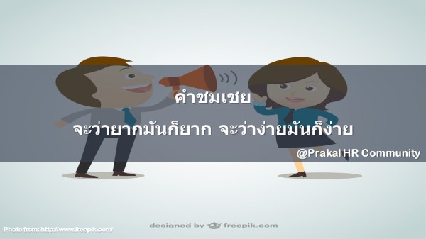เคยสอบถามคนที่เป็นหัวหน้า หรือผู้จัดการว่า เวลาที่ลูกน้องทำงานได้ดีนั้น เคยชมเชยลูกน้องตนเองบ้างหรือไม่ คำตอบที่ได้มาก็แบ่งเป็นสองกลุ่มใหญ่ๆ ก็คือ ไม่เคย และกลุ่มก็คือ ทำเป็นประจำ พอถามหัวหน้างานที่ไม่เคยชมลูกน้องเลยว่า เป็นเพราะอะไรทำไมถึงไม่ชมเชยลูกน้องบ้าง คำตอบที่ได้มา ก็แบ่งเป็นสองกลุ่มอีก กลุ่มแรกตอบว่า ก็เป็นหน้าที่ของพนักงานที่ต้องทำงานให้ดีอยู่แล้ว แล้วทำไมต้องชมพนักงานด้วย กับอีกกลุ่มหนึ่งตอบว่า ที่ไม่เคยชม ก็เพราะไม่รู้ว่าจะชมยังไงดี แค่จะเอ่ยปากพูดก็ยังไม่กล้า เขิน อาย สุดท้ายก็เลยไม่ชมดีกว่า อ่านเพิ่มเติม “คำชมเชย จะว่ายากมันก็ยาก จะว่าง่ายมันก็ง่าย”
