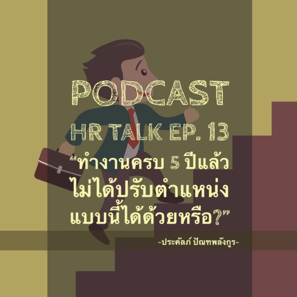 การเลื่อนตำแหน่ง คือการที่พนักงานได้รับหน้าที่และความรับผิดชอบที่สูงขึ้น ต้องทำงานที่ยากขึ้น และมีขอบเขตงานที่กว้างขึ้น หรือลึกขึ้นเมื่อเทียบกับงานเดิม ดังนั้น การที่พนักงานทำงานอย่างเดียว ซ้ำๆ จนครบ 5 ปี ไม่ได้เป็นการรับประกันว่า เขาจะทำงานที่ยากขึ้นได้ แล้วแบบนี้เราควรเลื่อนตำแหน่งให้หรือไม่ จำนวนปีอาจจะเป็นปัจจัยหนึ่ง แต่ผลงานที่ผ่านมา พฤติกรรมที่เหมาะสม และศัยภาพที่จะรับงานที่ยากขึ้น สิ่งเหล่านี้คือสิ่งที่เราควรพิจารณาเวลาจะเลื่อนตำแหน่งให้พนักงาน อ่านเพิ่มเติม “Podcast HR Talk EP.13: “ทำงานครบ 5 ปี ไม่ได้รับการเลื่อนตำแหน่งแบบนี้มันใช่หรือ””