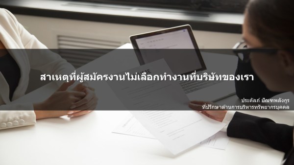อ่านเพิ่มเติม “การบริหารการสรรหาคัดเลือกในช่วงเศรษฐกิจตกต่ำ คัดคนที่ใช่ เพื่อสร้างผลงานให้เกิดผลจริง”สาเหตุที่ผู้สมัครงานไม่เลือกทำงานที่บริษัทของเรา